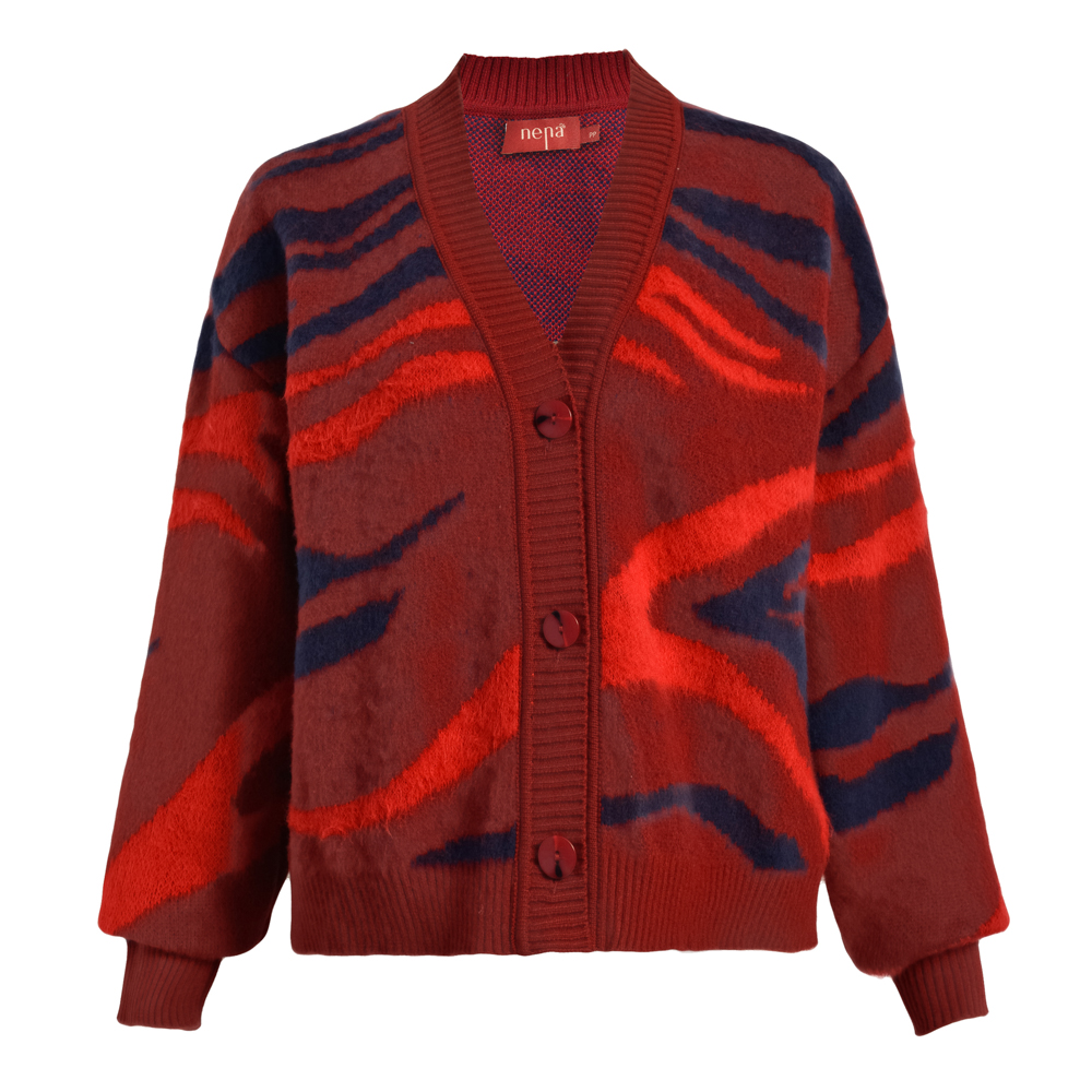 Cardigan em tricot com toque macio, modelagem reta e shape soltinho. Decote em V, mangas longas e punhos ajustados. Fechamento por botôes.Mix de padronagens e acabamento canelado no decote, punhos e barra.